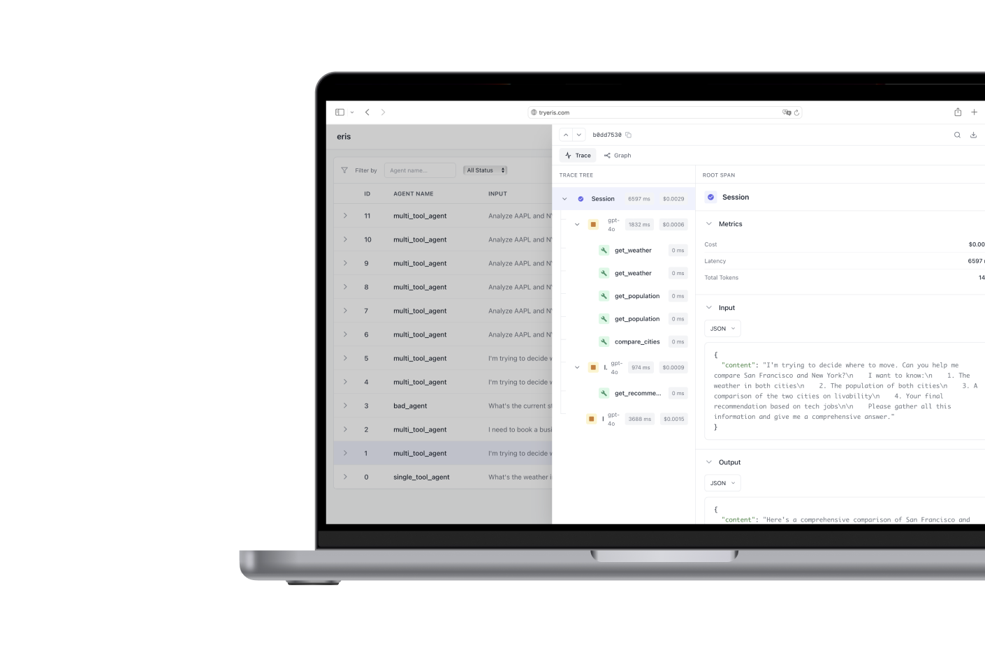 an agent health monitoring platform for end-to-end tracing and debugging agentic workflows in production.